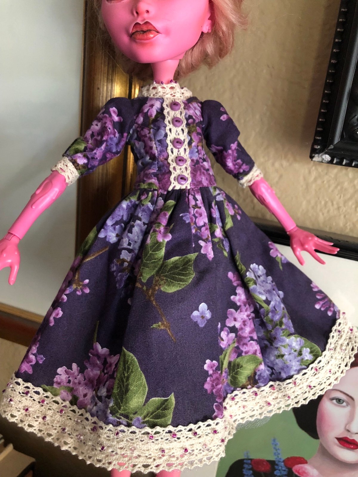 I purchased her dress on Etsy. Her shoes too (Lady Dynamite). Painted by me.
