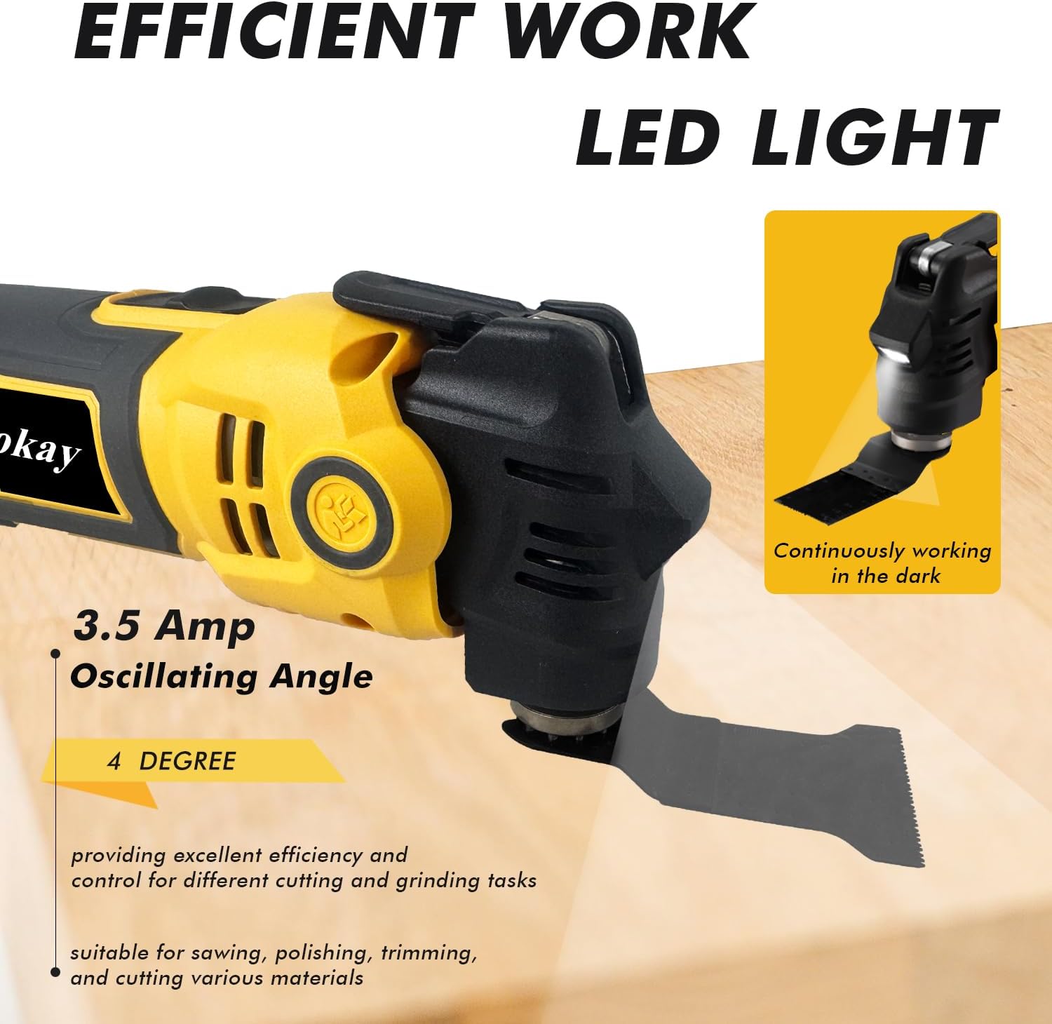 | Included Components | HCS saw blade*1, Obiokay oscillating power tool*1(Battery Not Included), sanding pad*1,sand paper*12,HCS steel countersunk head*1, stainless steel scraper *1, wood saw blade*2 |
