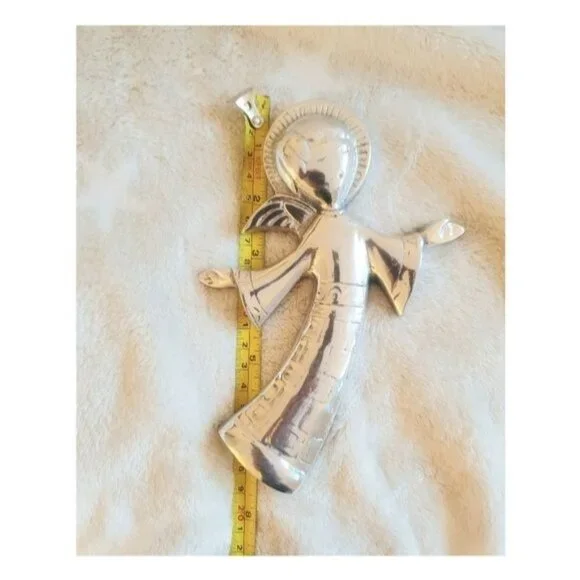 Vintage Handcrafted in Mexico Pewter wall Decor Angels with open arms classic timeless decor , the angles are slightly diferent see photos please, 7.5 In TallBeautiful and unique pewter wall angels, never used, great for baptism or first communion gift, Holidays Decor or any occasionAngelsPewterHandcrafted Vintage HandmadeVintageCottageGiftHolidaysID:003316T:C1