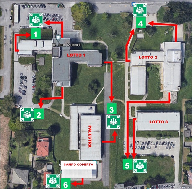 Si ricorda a tutto il personale e agli alunni l’importanza di recarsi nella più immediata prossimità ai punti di raccolta; i gruppi classe non devono sostare, ingombrandoli, lungo i percorsi che conducono ai punti stessi (vedi allegato).