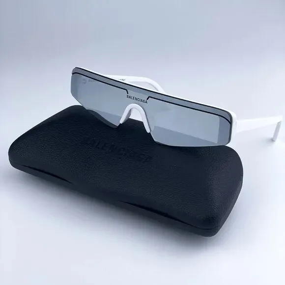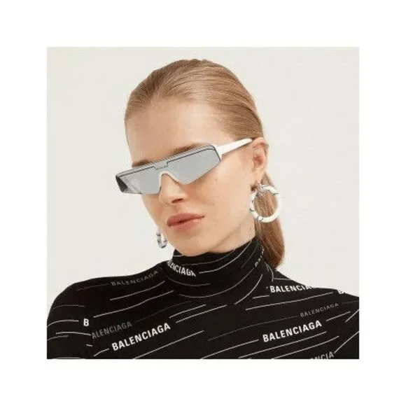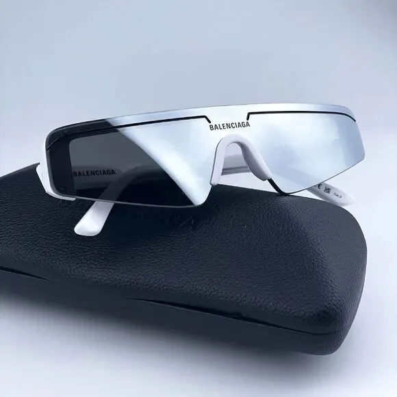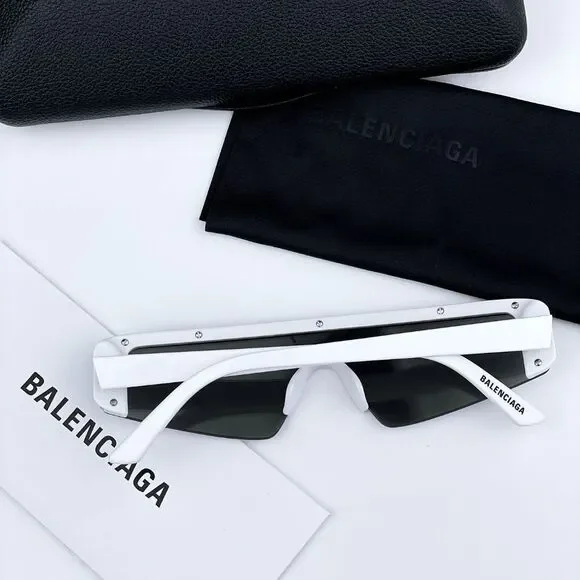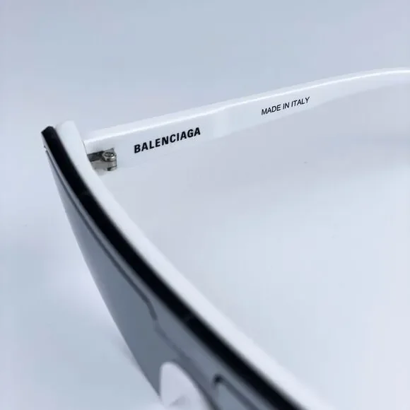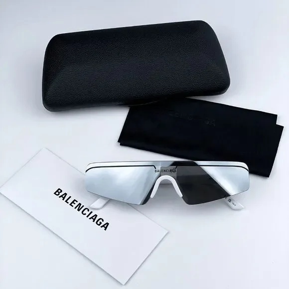 NEW Balenciaga BB0003S 002 White Silver Grey Mirrored Unisex SunglassesBrand:Balenciaga Model:BB0003S Color Code:002Gender:UnisexYear:2022Frame Colour:WhiteFrame Shape:Irregular Frame Style:Half RimFrame Material:PlasticLens Color:Silver Grey Mirrored Lens Material:NylonUV Protection:Category 3Size:99Х1Х140100% UV ProtectionMade in Italy.FULL RETAIL PACKAGE with all accessories: case, cloth and all paperwork.100% AUTHENTIC!